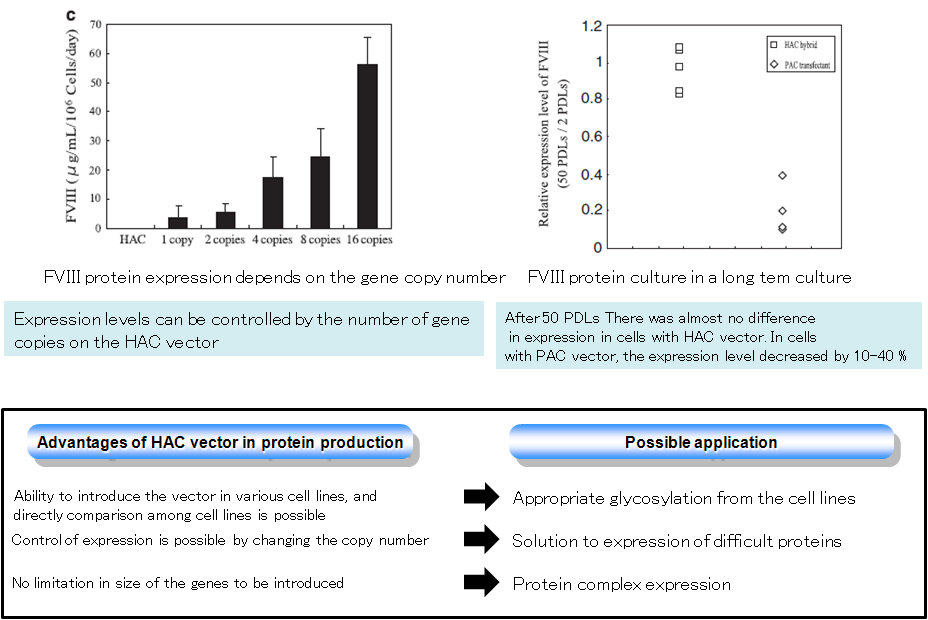 Very high yield, stable cell lines for protein/antibody production can be made using our proprietary HAC/MAC vector technology. chromocenter is your service partner that will help speed your large molecule drug development to clinic.